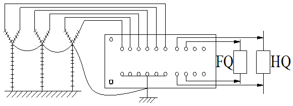 (4)高压开关的三相时间测量。一台高压开关一般由三相组成,所以在机械试验中必须测量三相的时间参数。图1-4示出了用光线示波器进行三相时间测量的接线图。